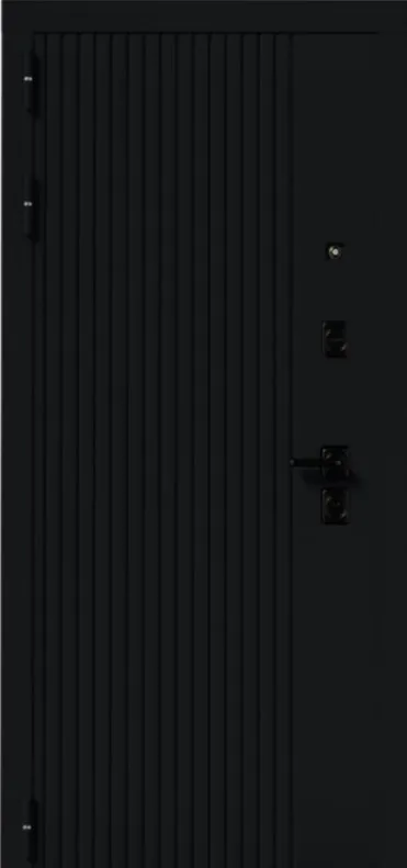 Ручка черная на квадратной планке раздельная стяжная; цилиндр ключ/вертушка, независимая ночная задвижка, глазок над замковой группой.